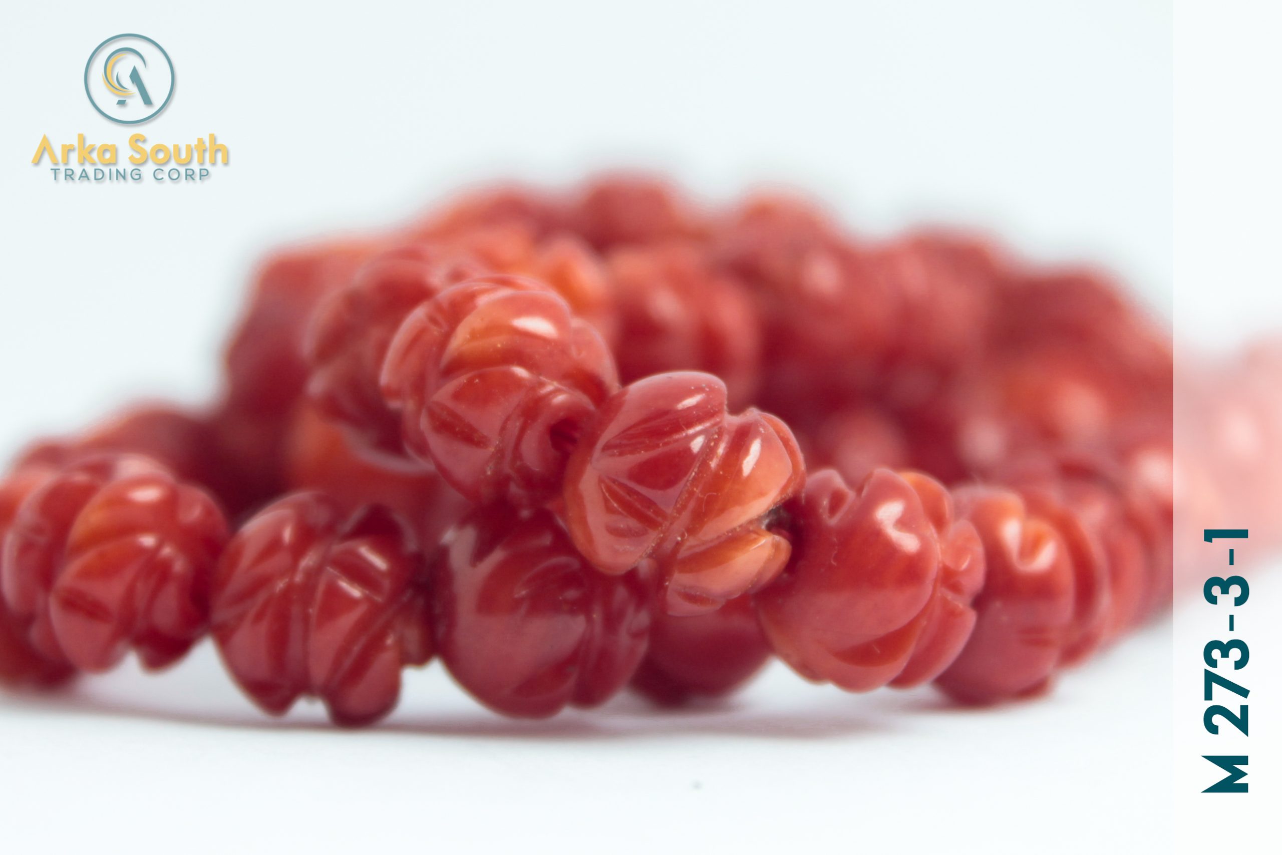 Tira de Cuentas de Coral Tallado, Redondas 7mm (55 pzas)
