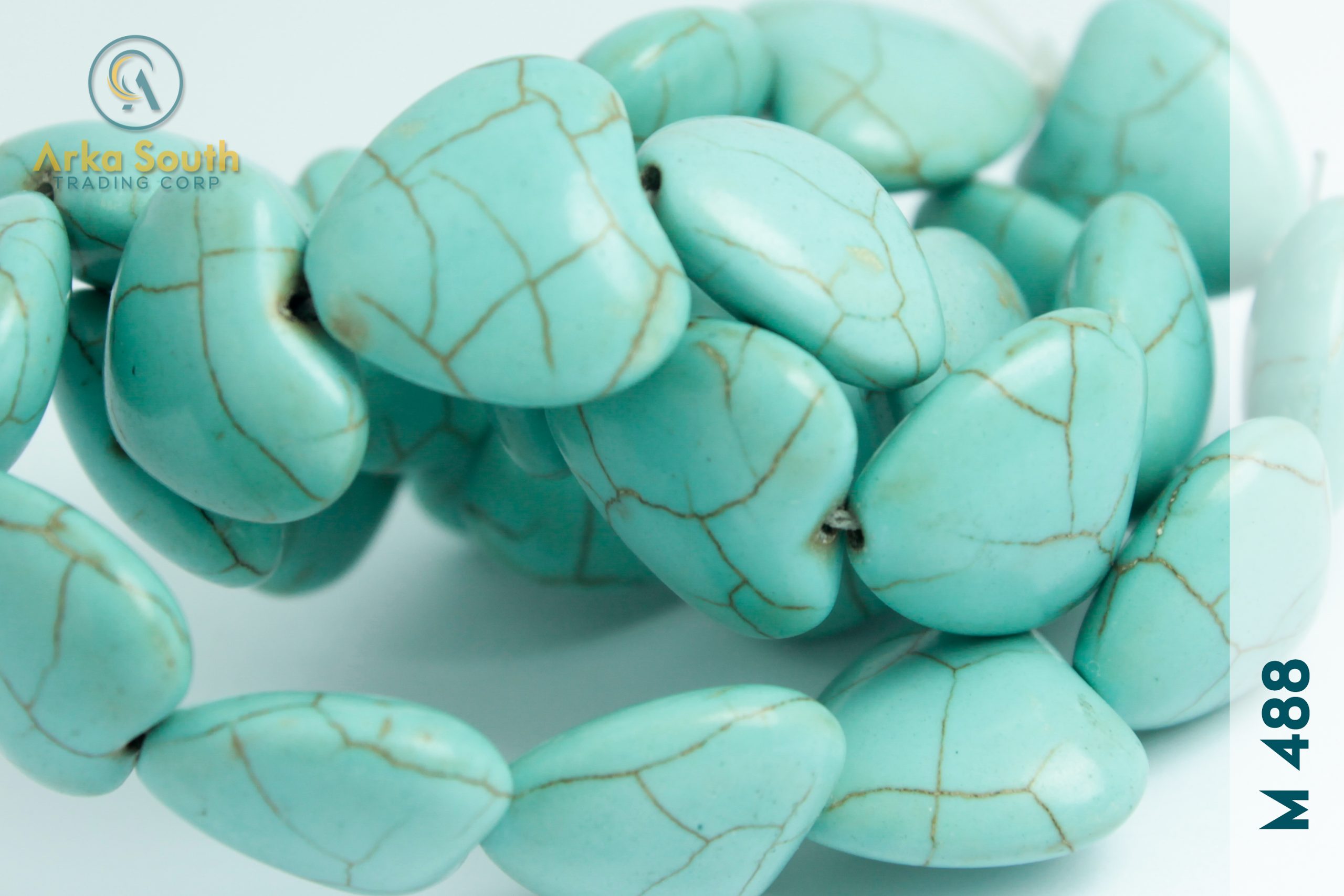 Tira de Cuentas de Turquesa Natural, Corazones 18x17mm (19 pzas)
