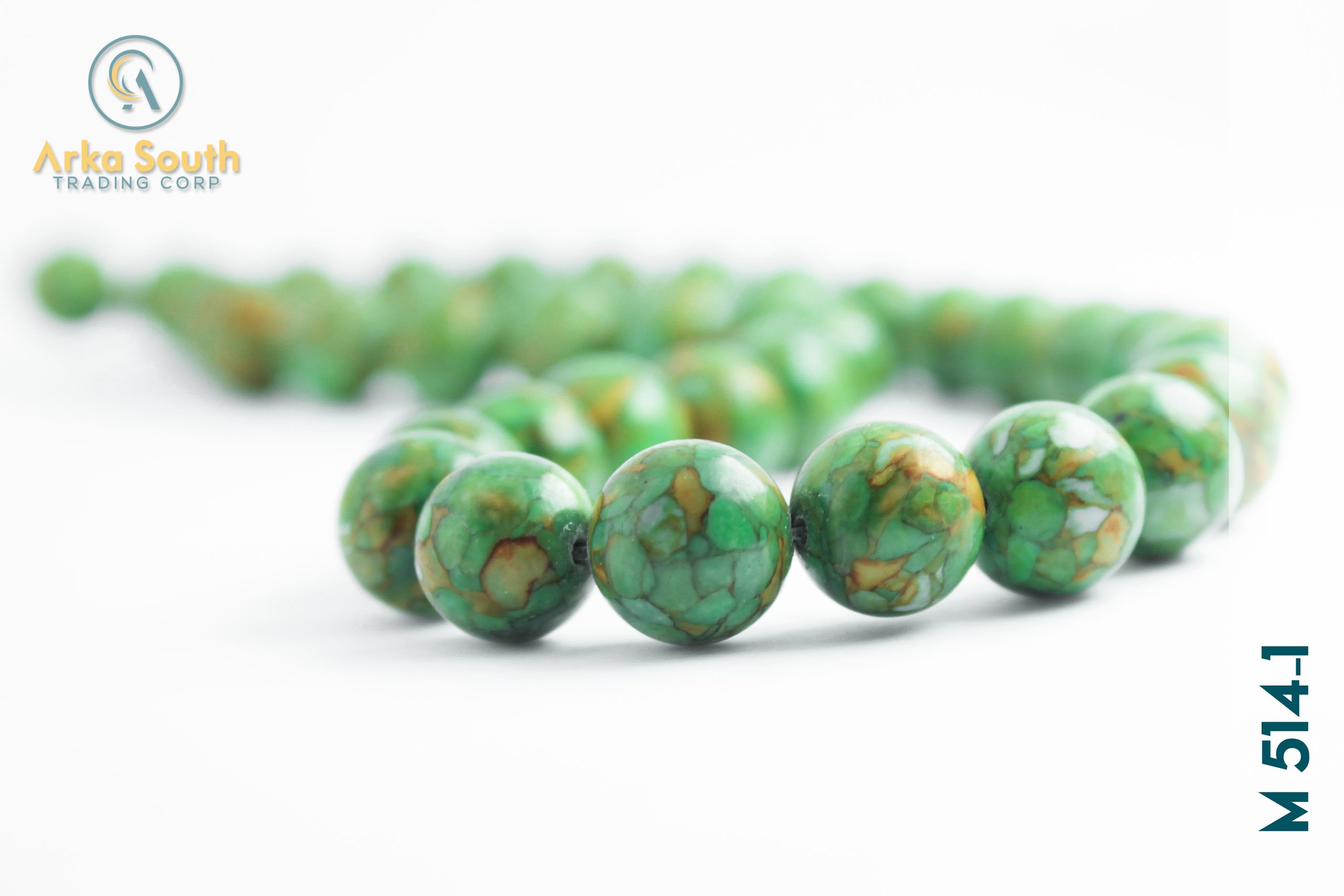 Tira de 36 cuentas redondas de 12mm, elaboradas con un llamativo mosaico de turquesa en tonos verdes. Su diseño artesanal aporta textura y un estilo único.